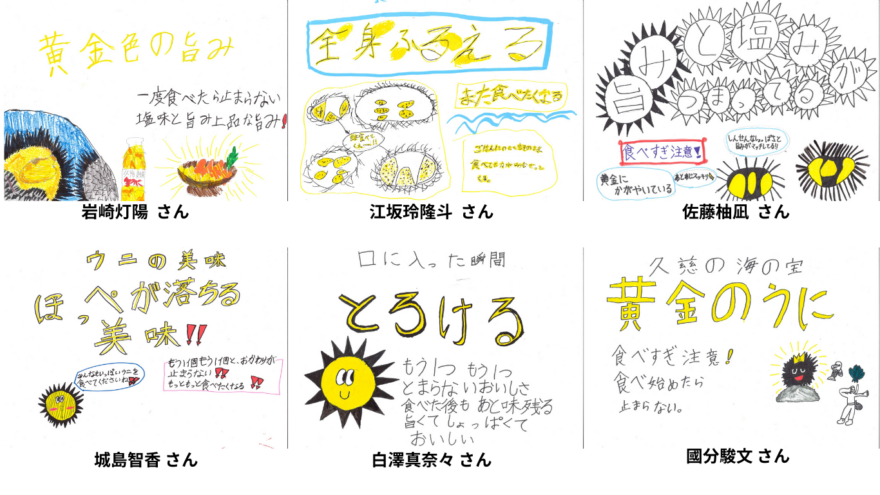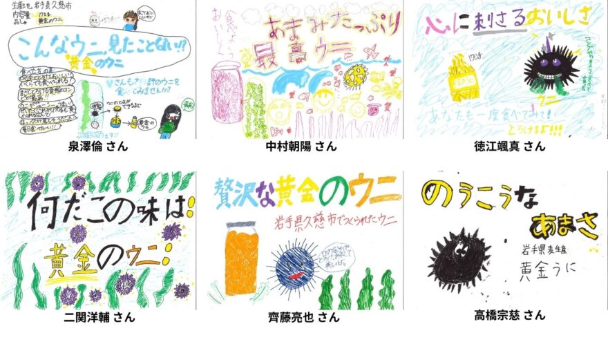 今年8月、久慈市・普代村で小学生を対象に開催した「いわてマリンツアー2025 in 久慈」。ツアーに参加した小学生24人が岩手の海の豊かさの大切さ、ウニに起きている問題などを学び、その学びや伝えたいことをイラストやキャッチコピーで表現しました。